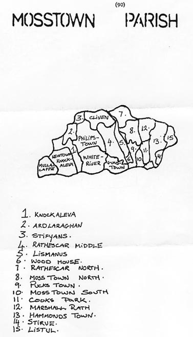 The below map shows the boundaries of the individual townlands that make up Mosstown parish.