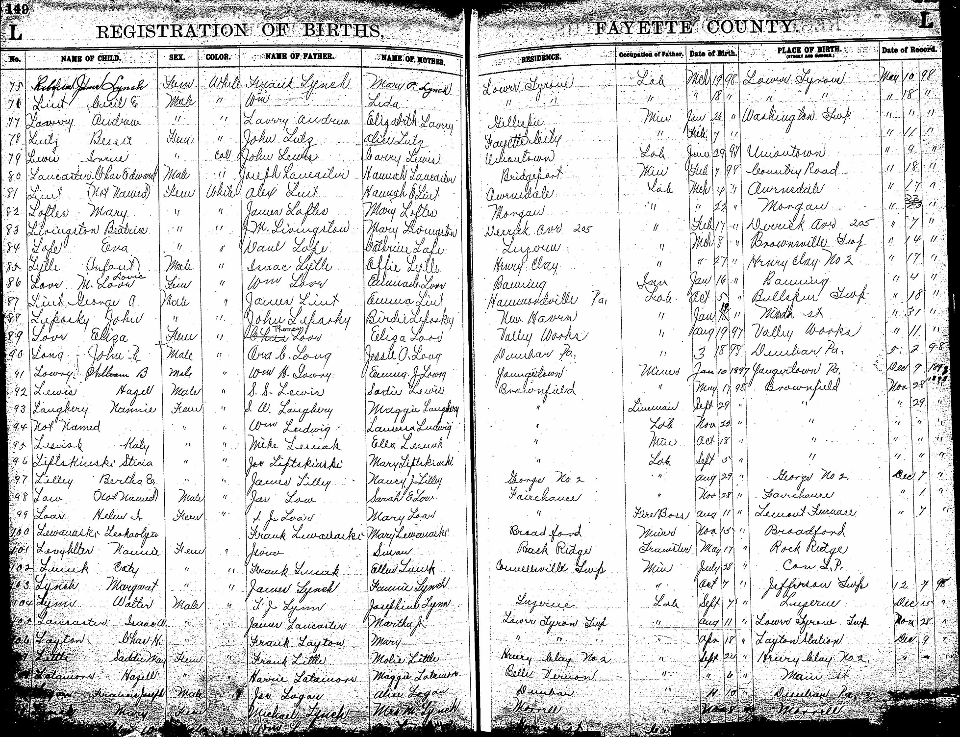 Note 1: The Mary Lynch entry is the next to last entry on the page.