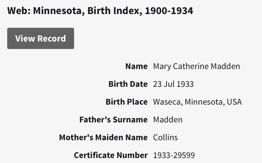 Larry's Roy Benedict and Mary Agnes (nee Collins) Madden Family Page