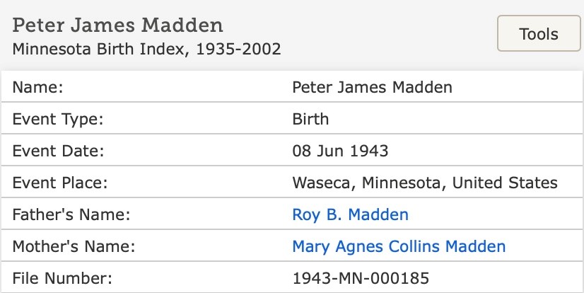Larry's Roy Benedict and Mary Agnes (nee Collins) Madden Family Page