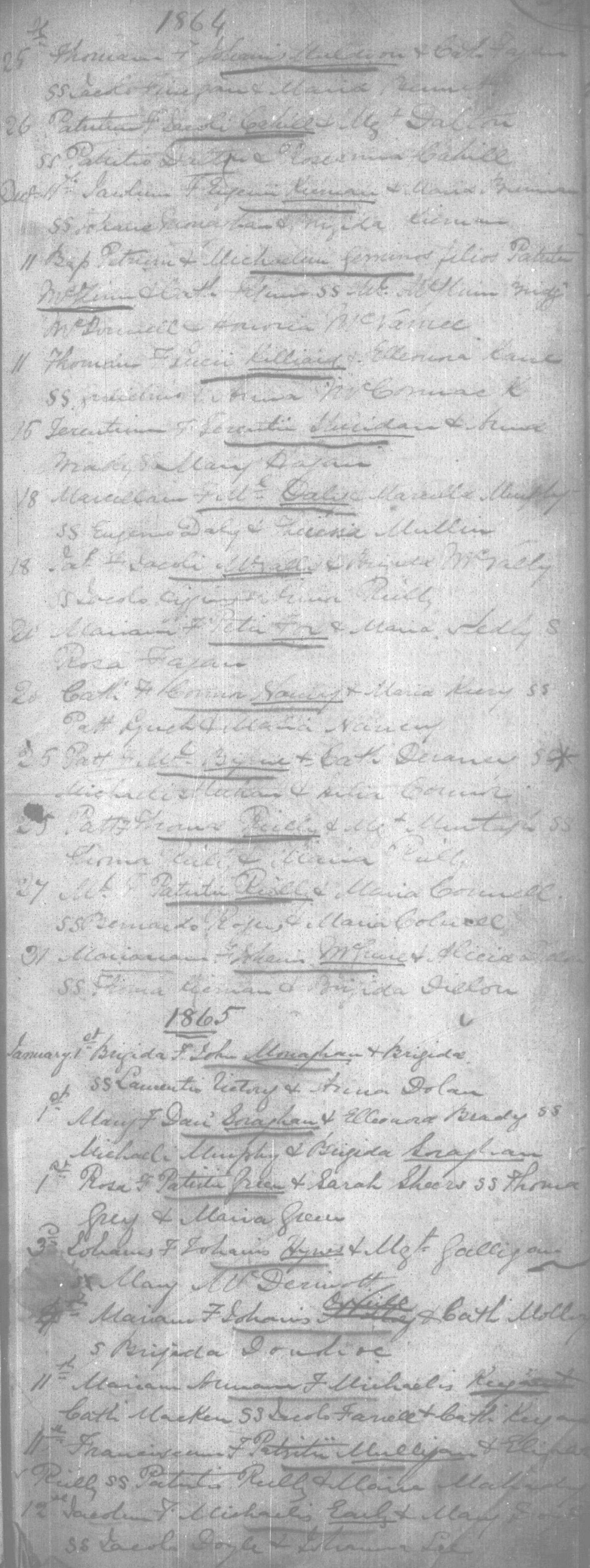 Note 2: The Mary Anne McGuire entry is the last entry before the 1865 heading.