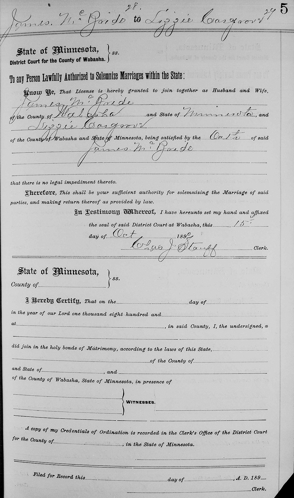 Note 2: Marriage certification part of form not filled in. Marriage assumed to have been in October 1890.