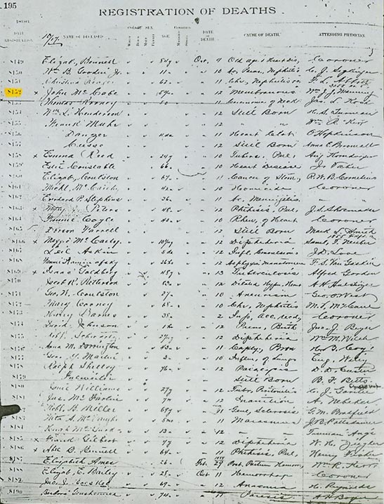 Note 1: John McCabe's death is recorded on page 195 of the 1896 Philadelphia Death Register.