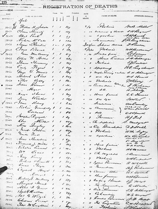 Note 1: Nicholas McCabe's death is recorded on page 195 of the 1893 Philadelphia Death Register.