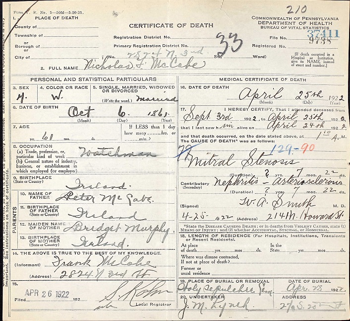 Larry's Peter and Bridget (nee Murphy) McCabe Family Page
