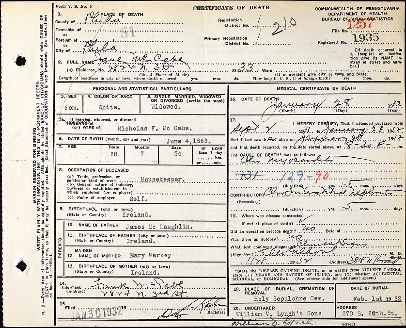 Larry's Nicholas and Jane (nee McLaughlin) McCabe Family Page