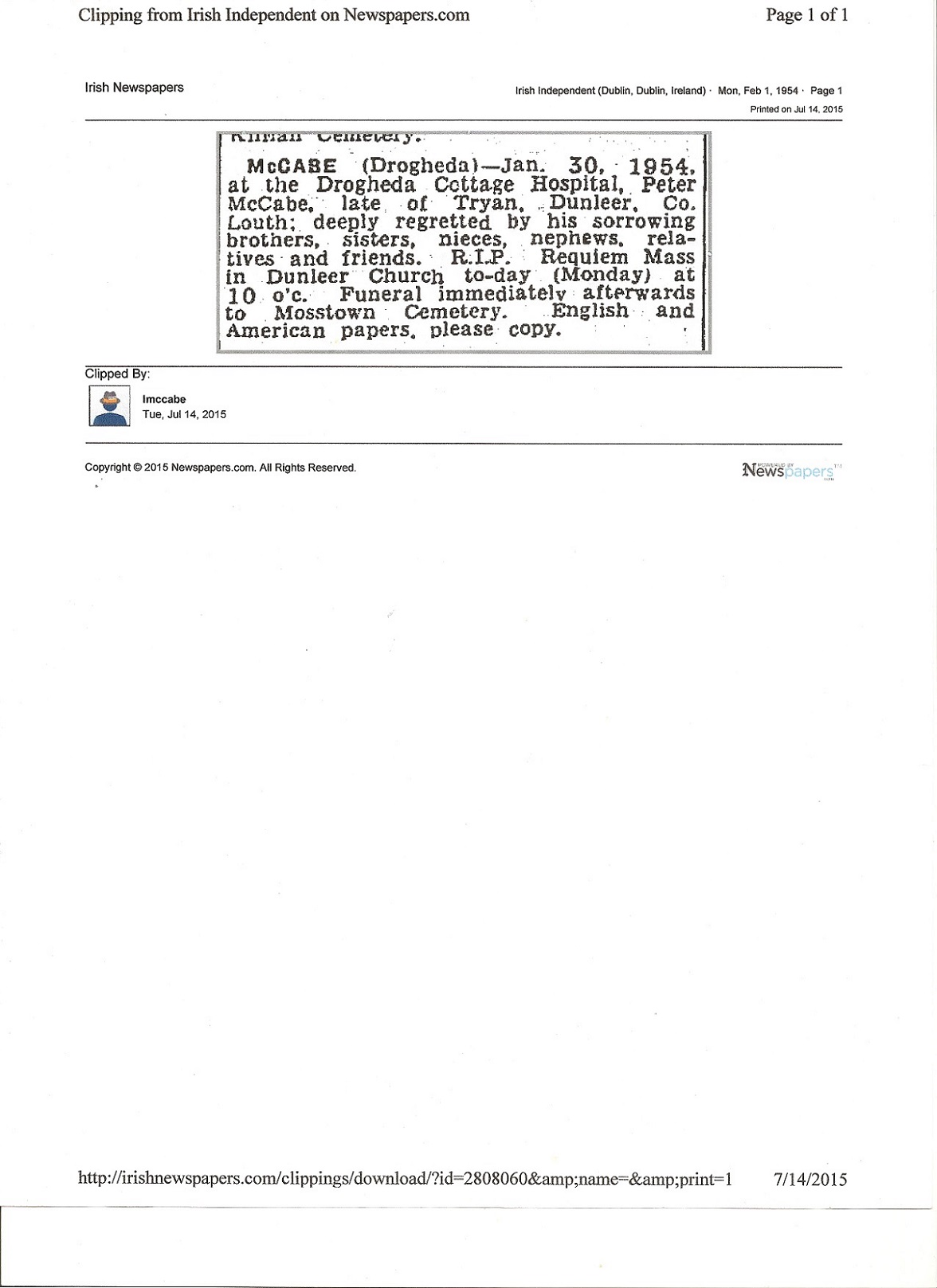 Larry's James and Margaret (nee Flynn) McCabe Family Page