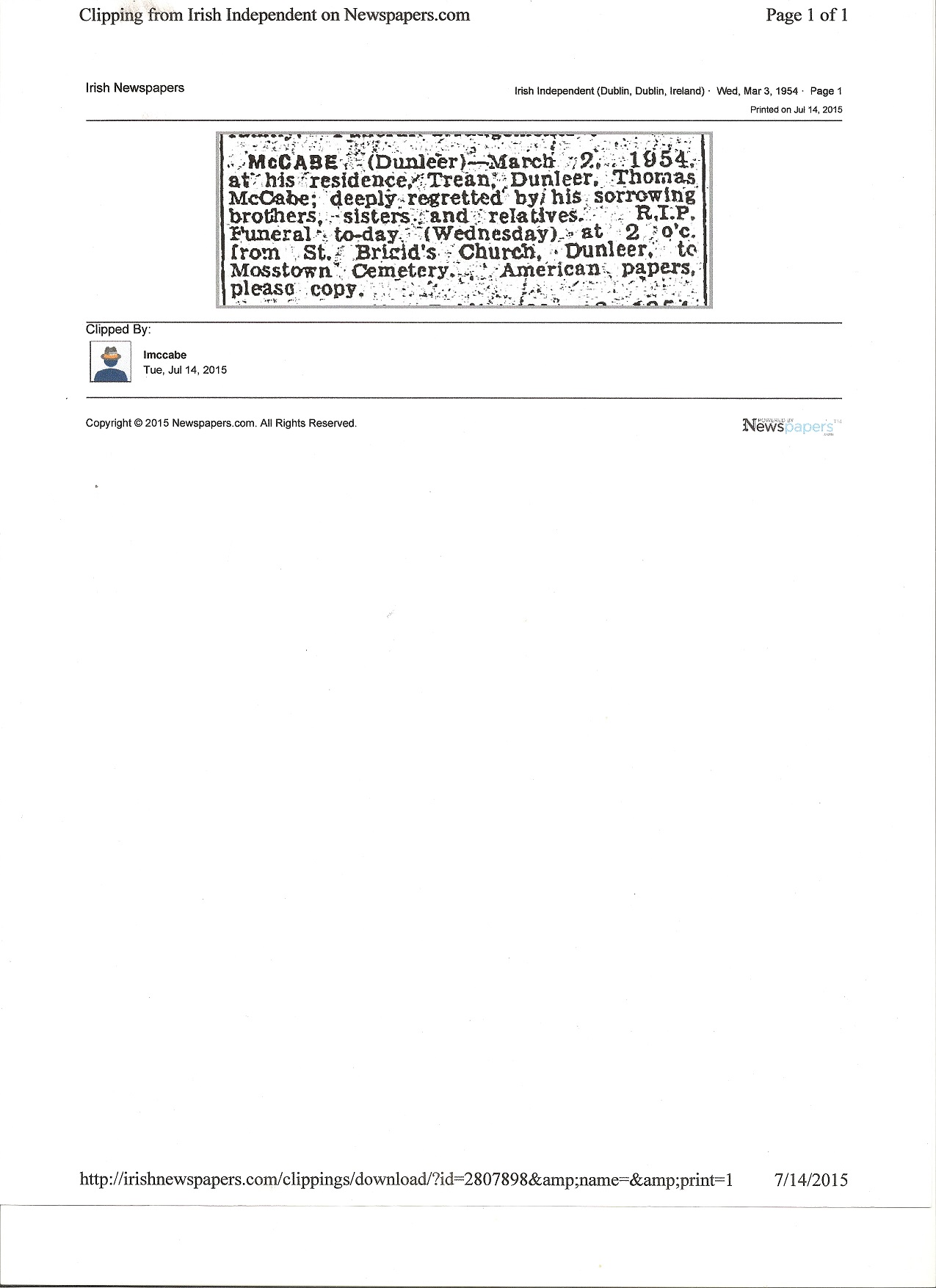 Larry's James and Margaret (nee Flynn) McCabe Family Page
