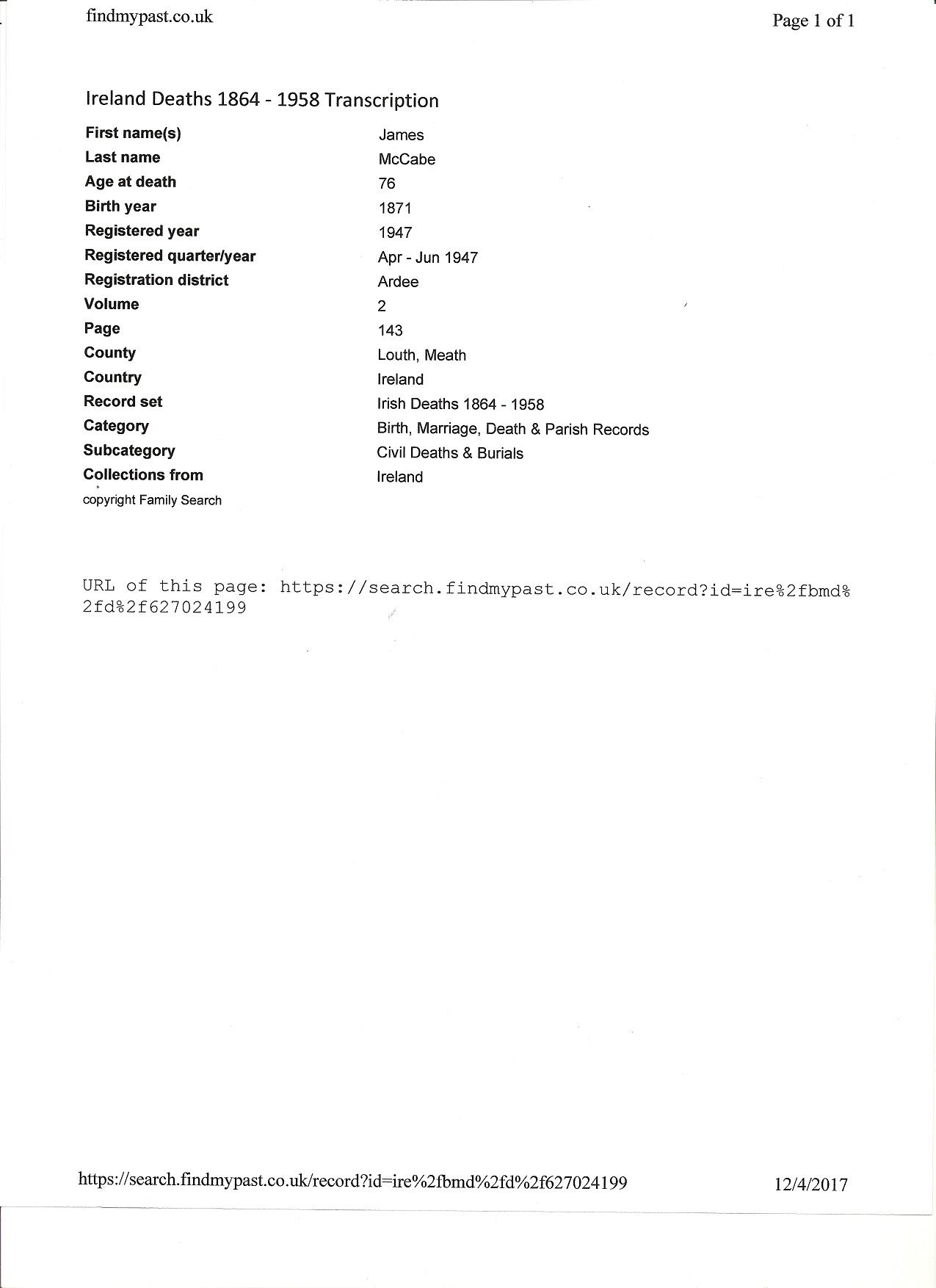 Larry's James and Kate (nee Healy) McCabe Family Page