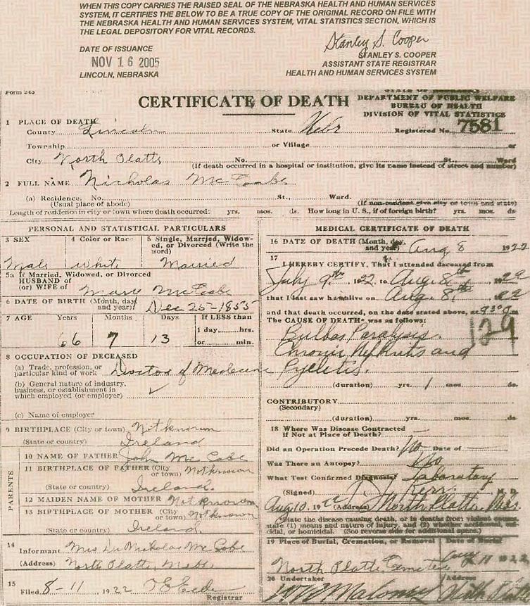 Dr. Nicholas and Mary/Molly (nee O'Connor) McCabe Family Page