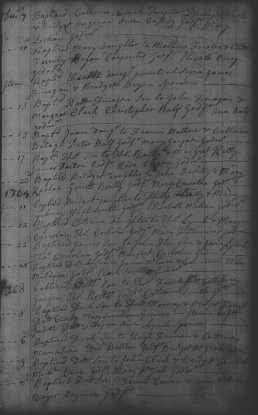 Note 2: The Patrick McCabe entry is the 4th entry after the "1764" notation in the left most column.