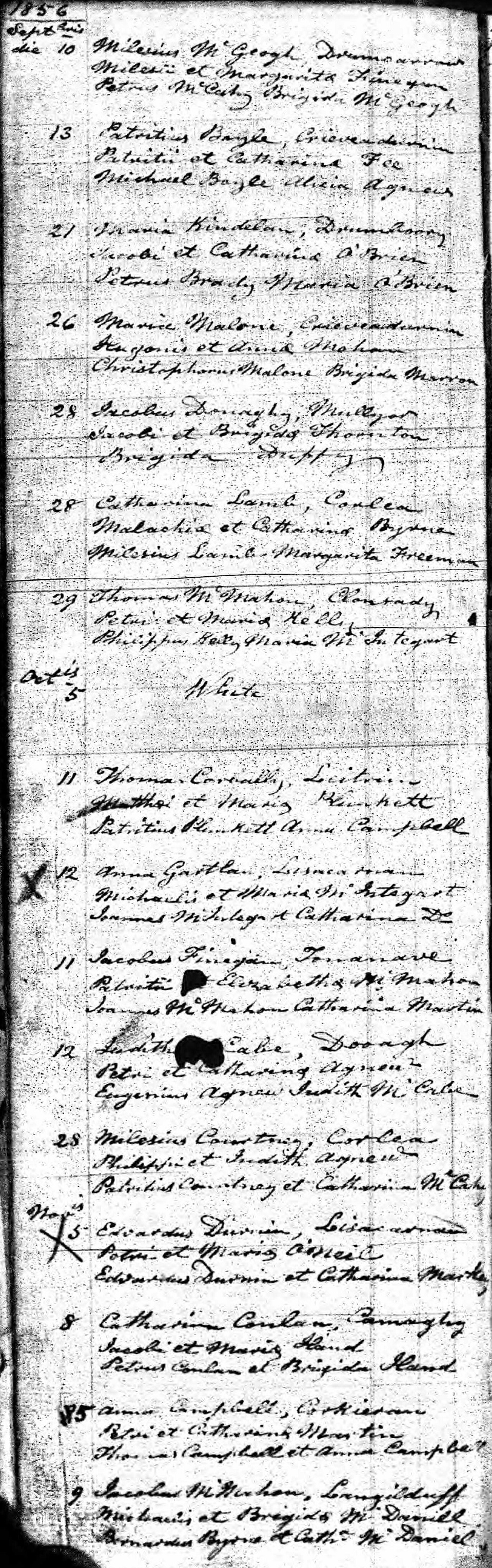 Note 1: Catholic Church, Magheracloone, Co. Monaghan, Ire. - Microfilm 05574, Page 111.