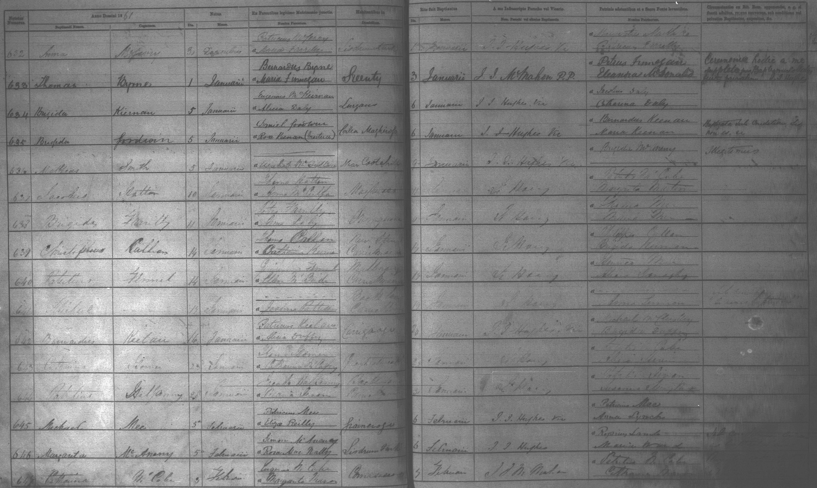 Note 2: The Catherine McCabe entry is entry #647, the last entry on the page.