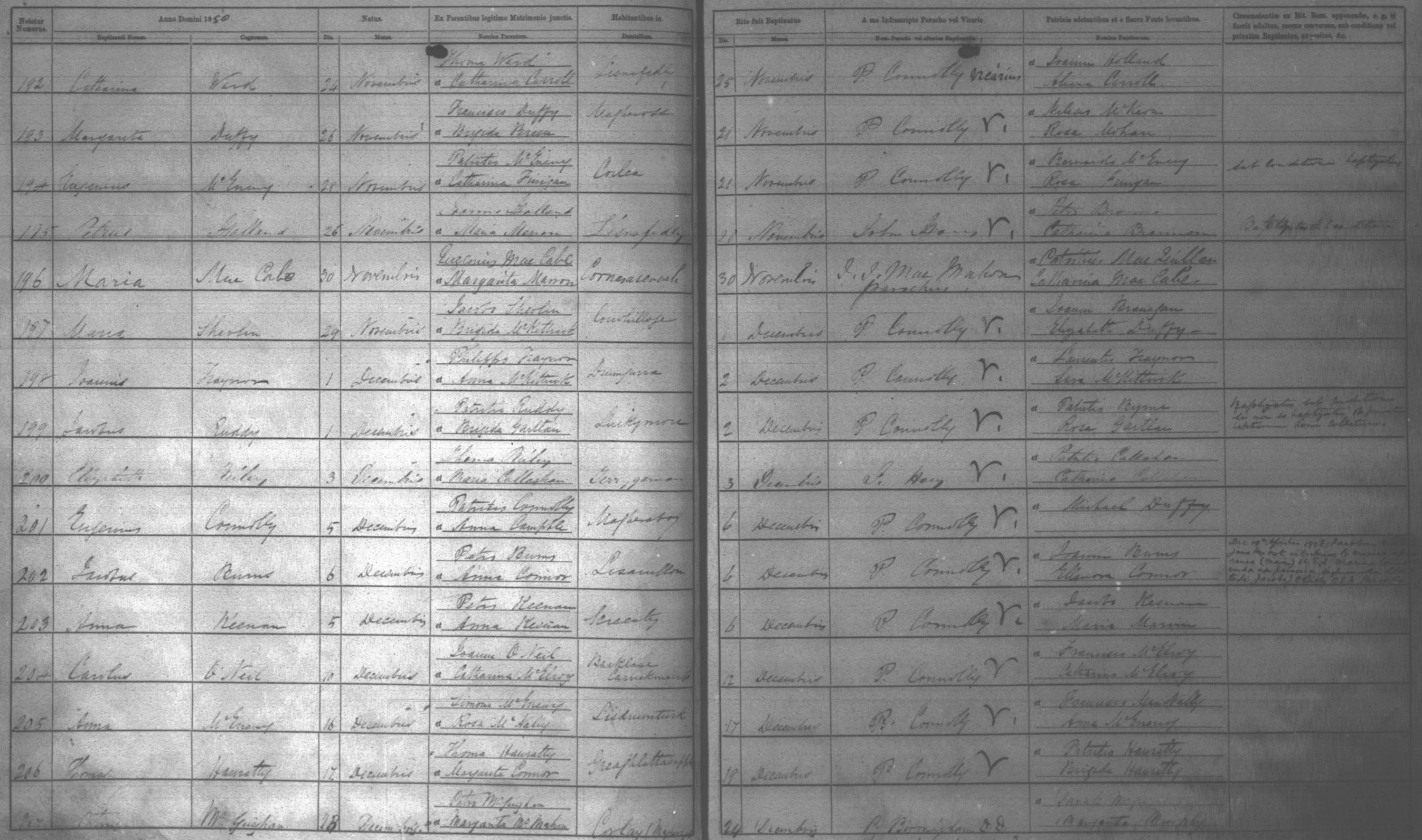 Note 2: The Mary McCabe entry is entry #196, the 5th entry down the page.