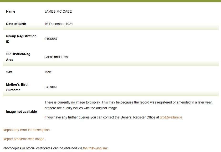 Larry's Owen and Margaret (nee Marron) McCabe Family Page