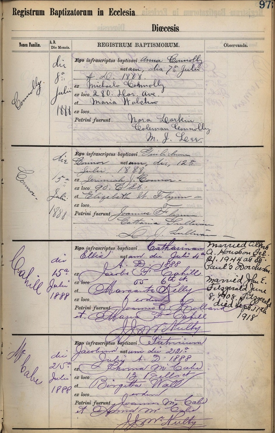 Patrick James McCabe Born July 22, 1888 Baptized July 25, 1888 Boston, Massachusetts, USA