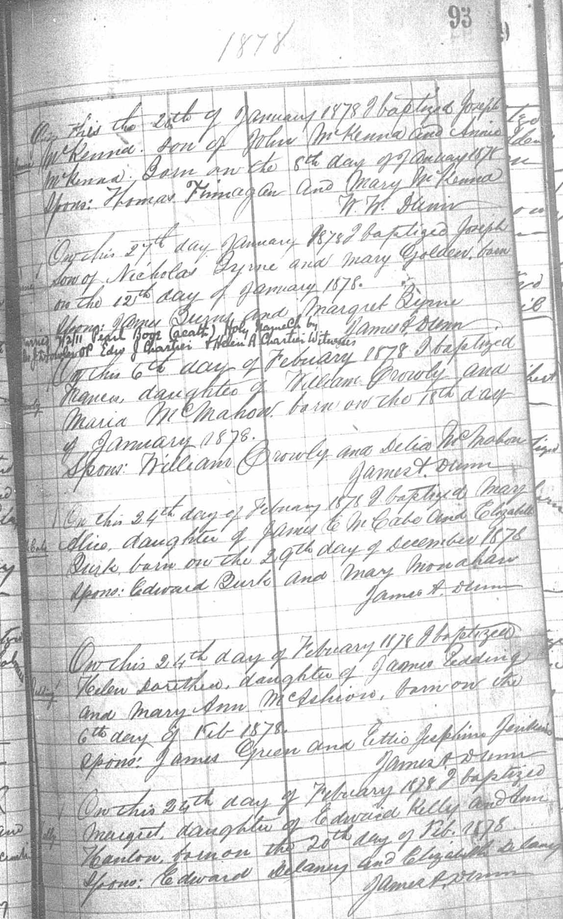 Note 1: Mary Alice McCabe was baptized in St. Patricks Catholic Church.
