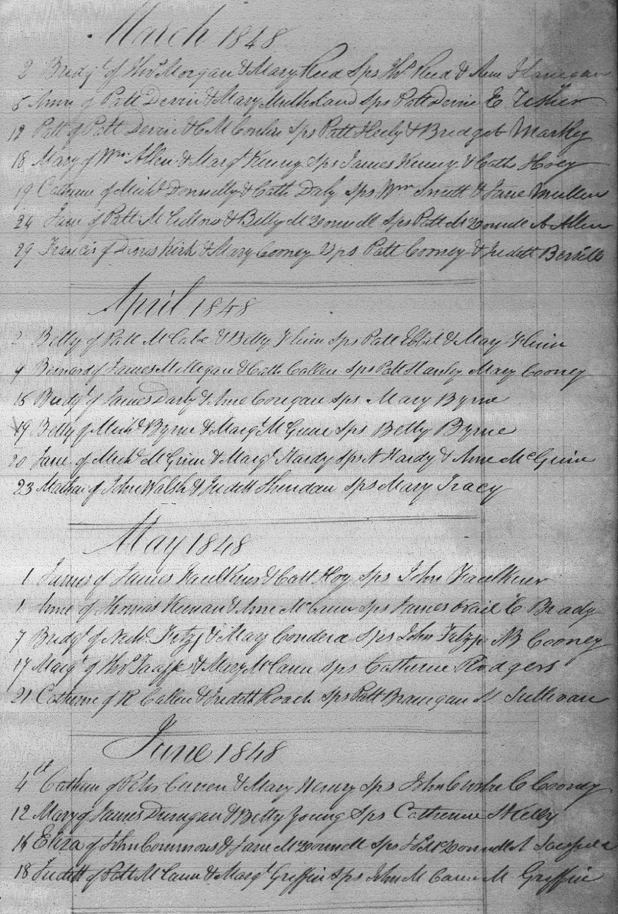 Note 2: The Elizabeth "Betty" McCabe entry is the 1st entry after the "April 1848" heading.