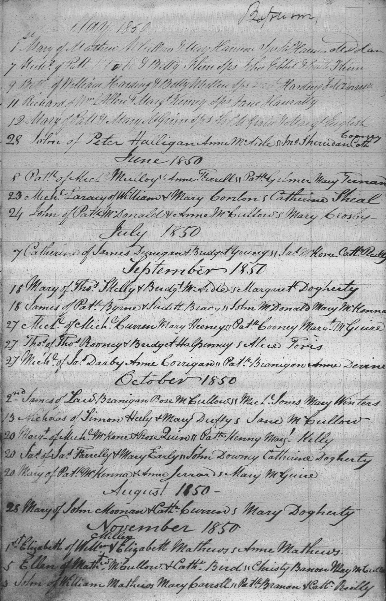 Note 2: The Michael McCabe entry is the 2nd entry after the "May 1850" heading.
