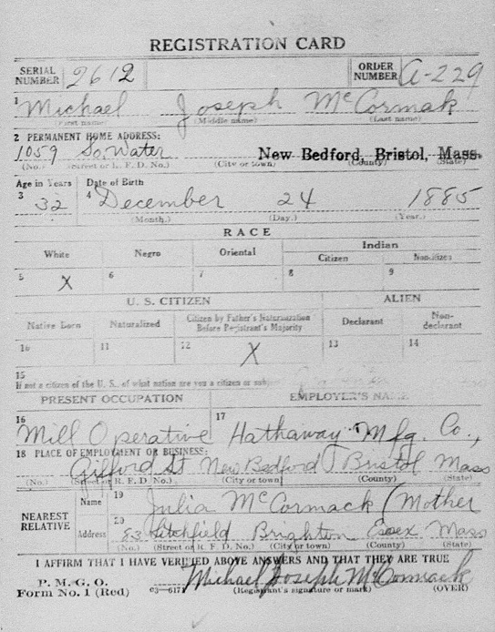 WW I Draft Registration Info