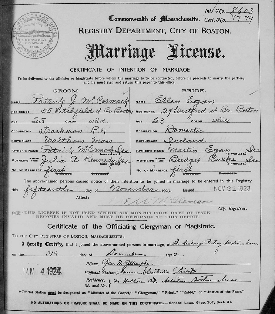 Larry's Patrick and Judith "Julia" Ann (nee Kennedy) McCormack Family Page