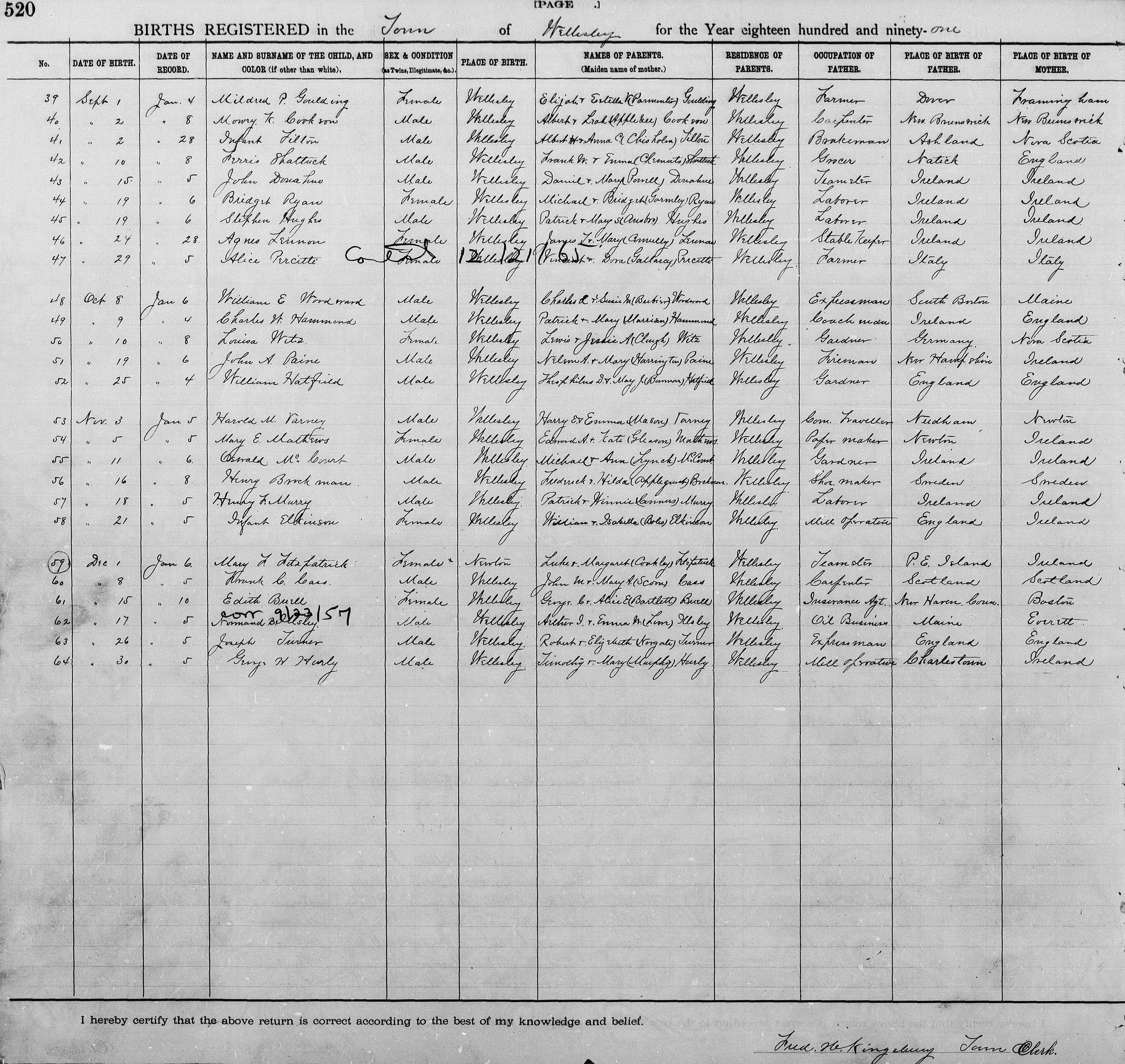 Note 1: The Oswald J. McCourt entry is line 55, the 3rd entry for November