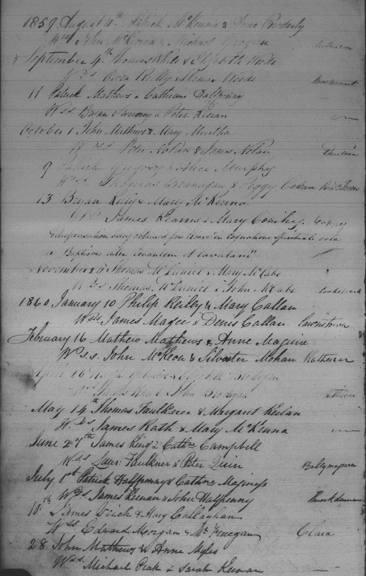 Note 2: The Thomas McDaniel / Mary McCabe entry is the only November entry, about halfway down the page.