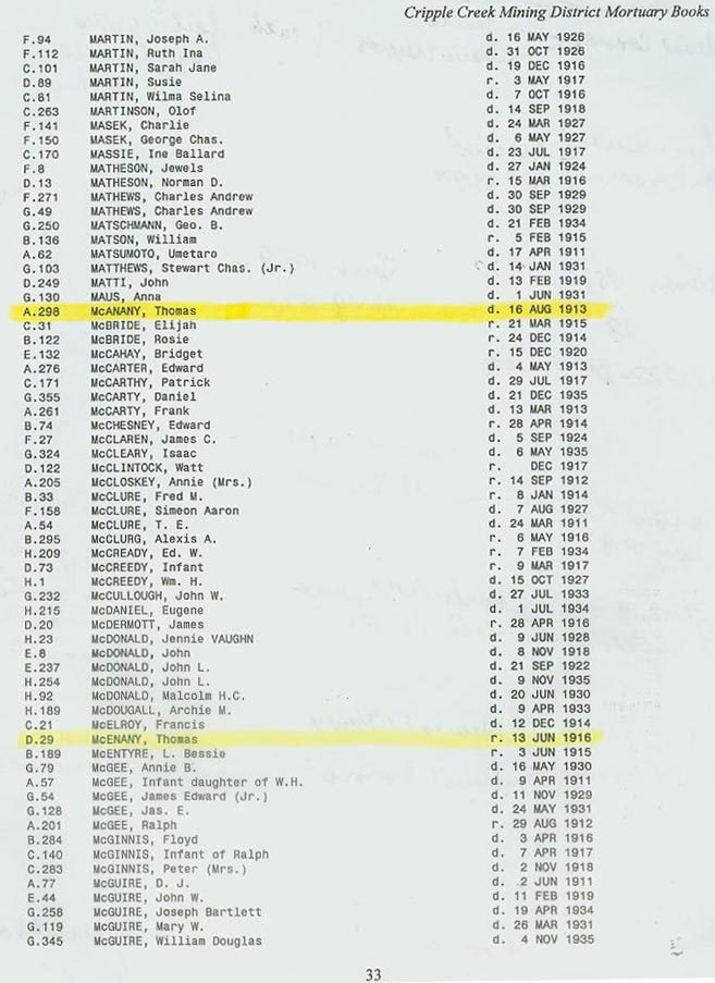 Go To: Thomas McEnany Page Colorado Connections Page Larry's Family Names Page Larry's Genealogy Page