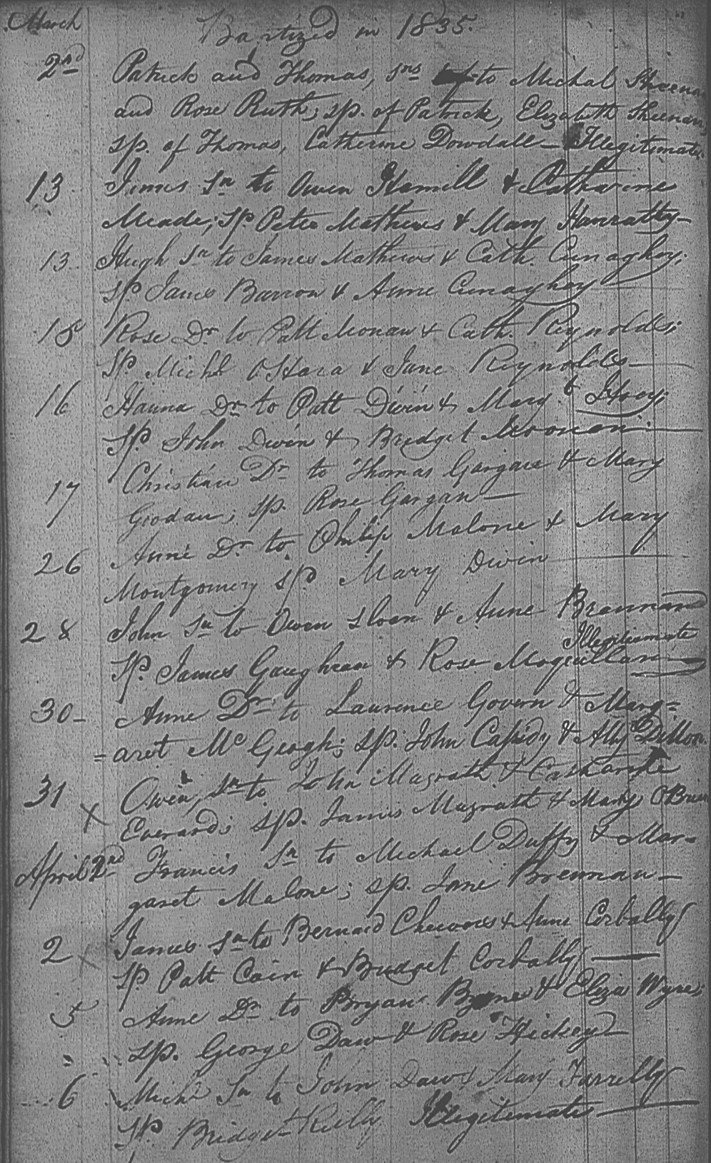 Note 3: The Owen McGrath entry is the last entry listed during the month of March.