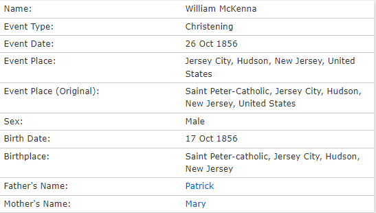 William McKenna Born October 17, 1856 Jersey City, NJ, USA