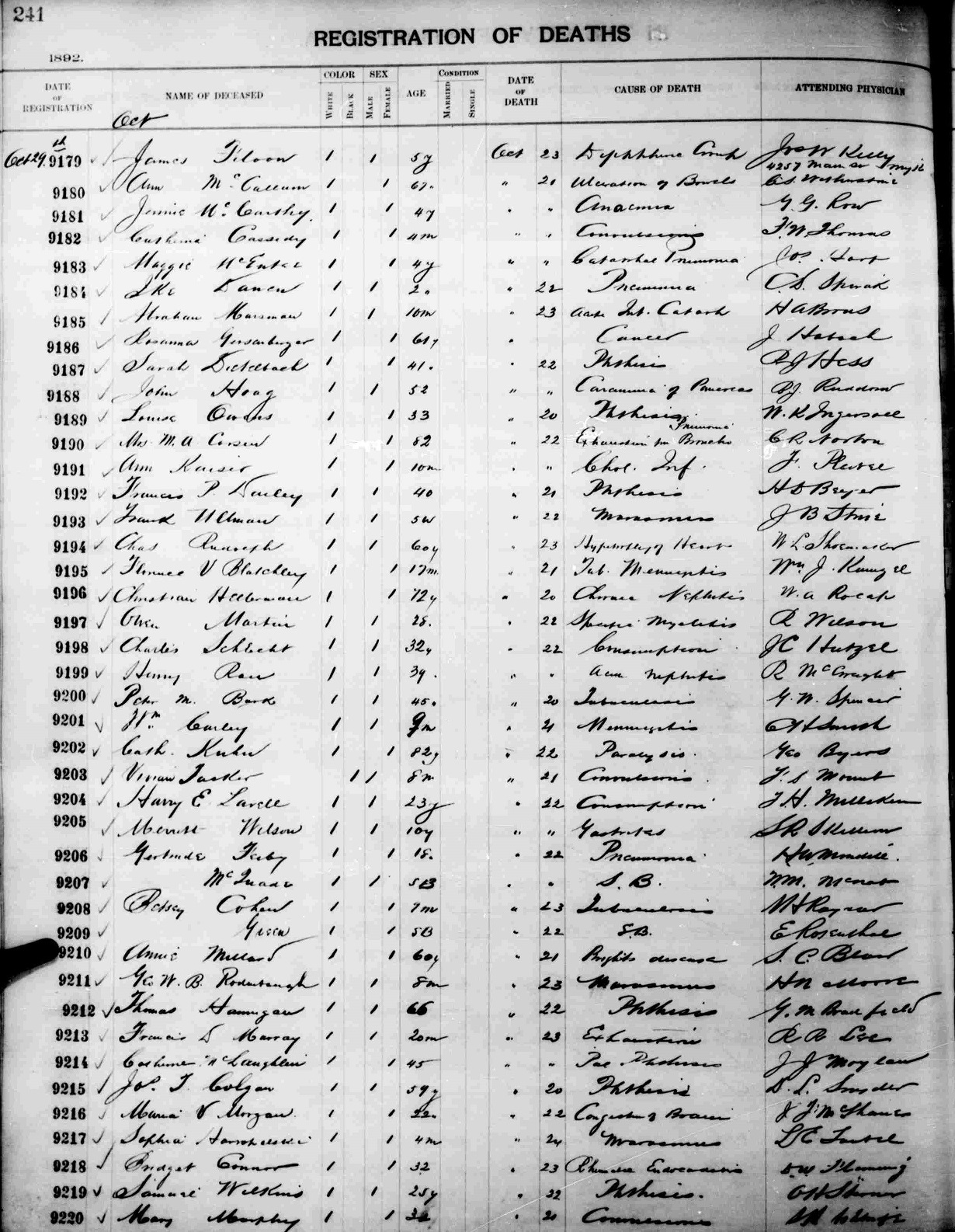 Note 1: The McQuaid/McQuade stillborn entry is recorded on page 241 of the 1892 Death Register for the city of Philadelphia, PA.