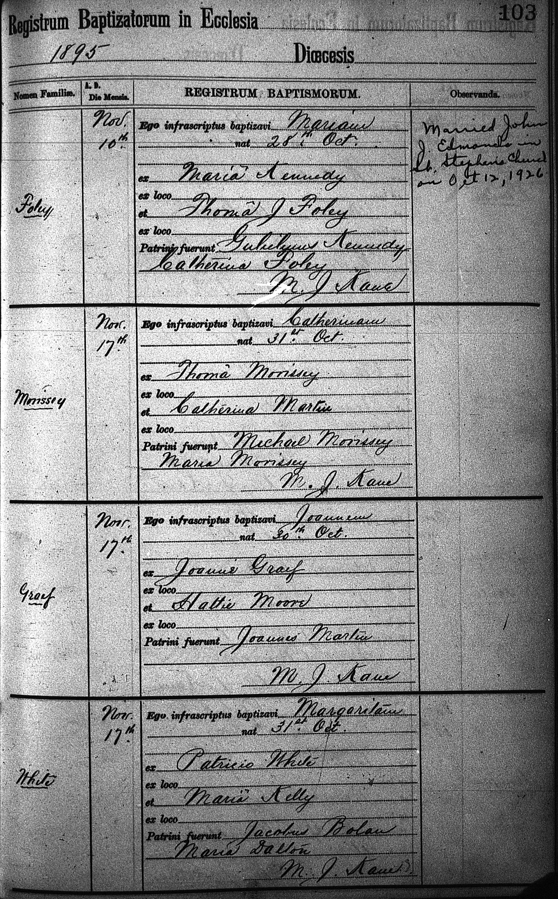 Baptized November 17, 1895