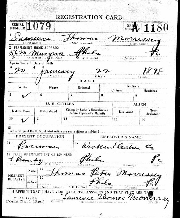 WWI Draft Registration Info