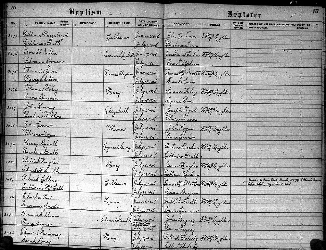 Baptized July 29, 1906