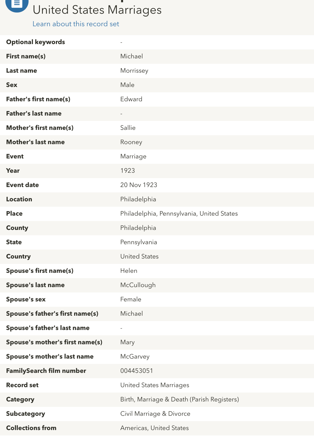 Larry's Edward and Sallie (nee Rooney) Morrissey Family Page