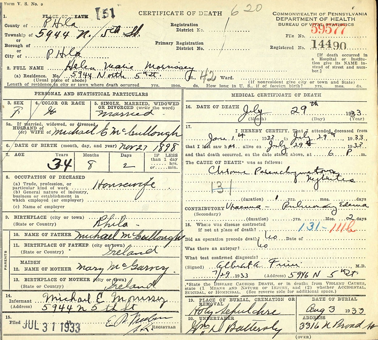 Larry's Edward and Sallie (nee Rooney) Morrissey Family Page