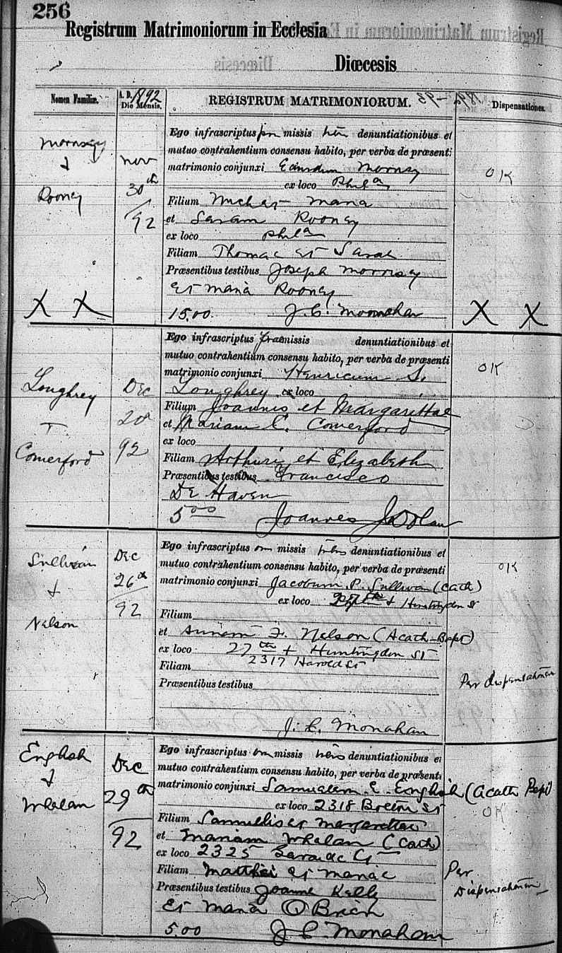Married November 30, 1892