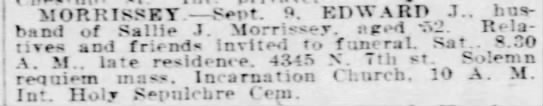 Larry's Michael and Mary (nee Hewitt) Morrissey Family Page