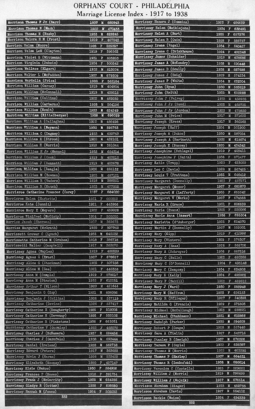 Note 1: The Margaret Morrissey entry is on the right side, license number 685870.
