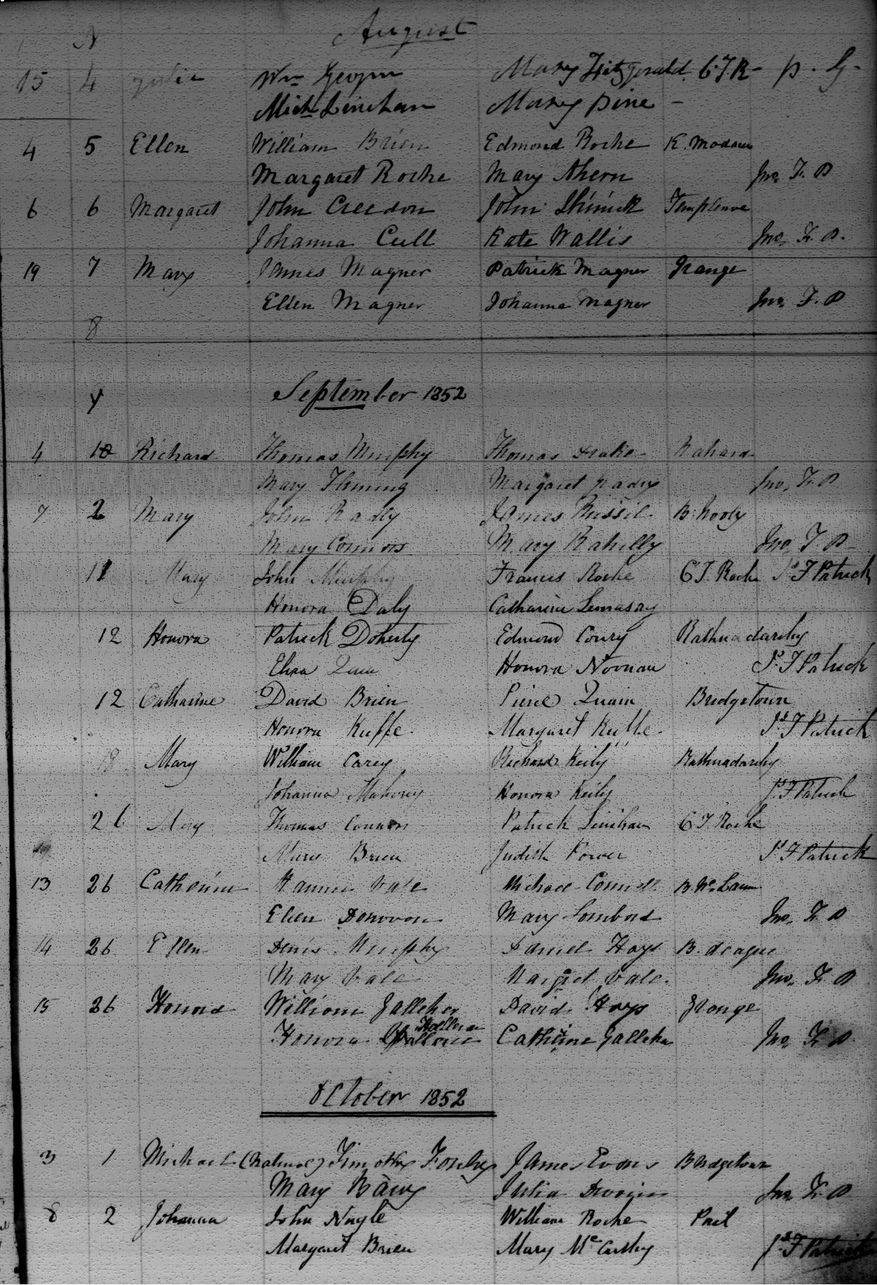 Ellen Murphy Daughter of Dennis Murphy and Mary (nee Vale/Veal/Veale) Murphy Baptized Sep. 14, 1852