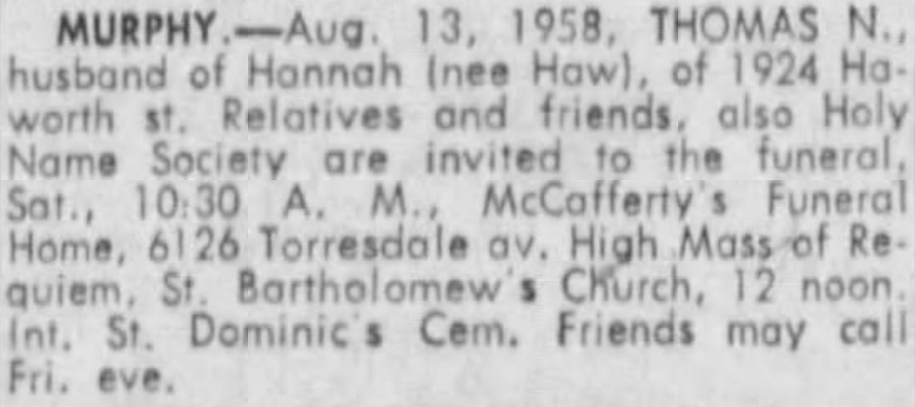 Larry's Thomas N. and Hannah A. (nee Haw) Murphy Family Page