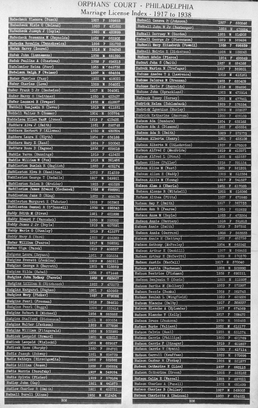 Marriage License Index