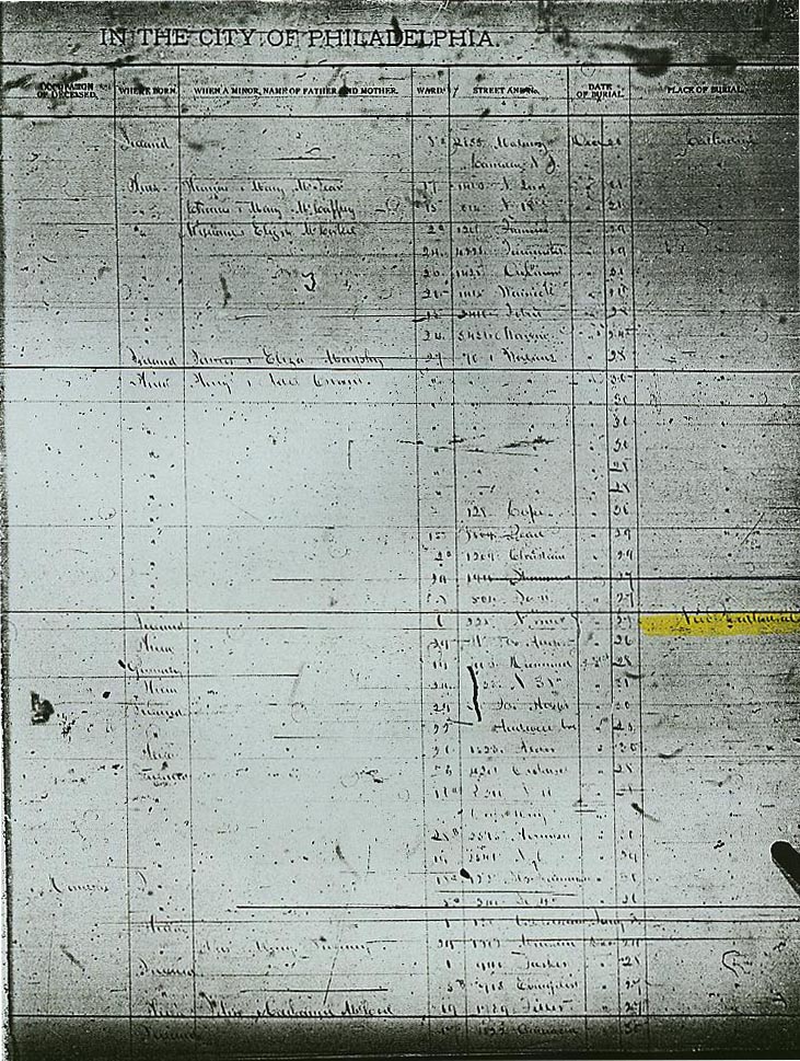 Mary (nee Vale/Veal/Veale) Murphy Died Thursday, December 23, 1886 Philadelphia, PA