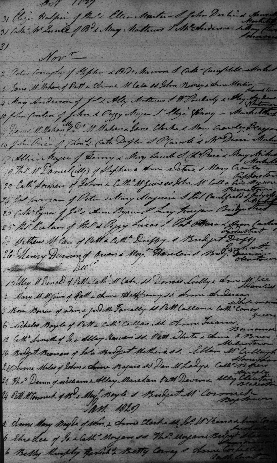 Betty Murphy Daughter of Nicholas and Betty (nee Carney) Murphy Baptized Jan. 6, 1828