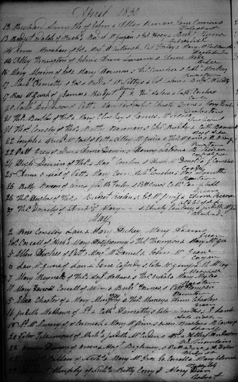 Bridget Murphy Daughter of Nicholas and Betty (nee Corry) Murphy Baptized May 23, 1830