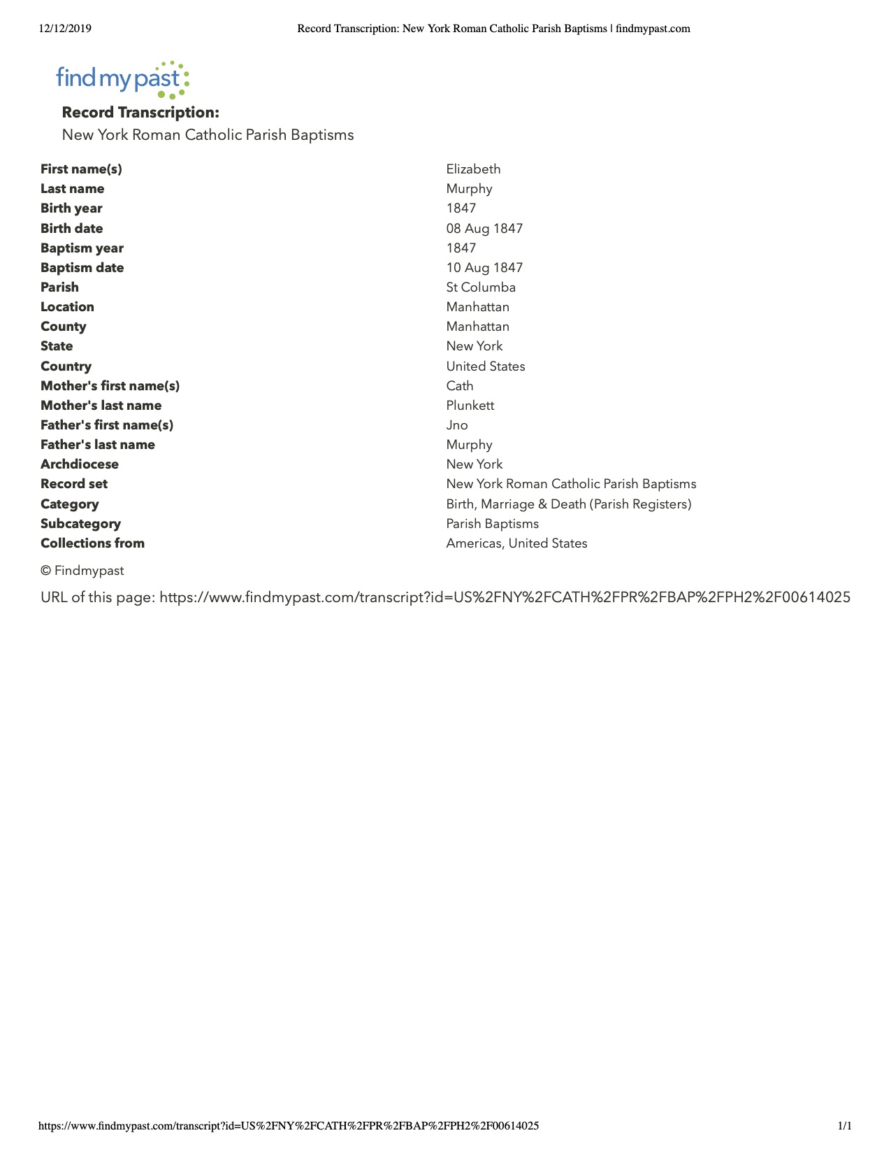 Larry's John and Catherine (nee Plunkett) Murphy Family Page