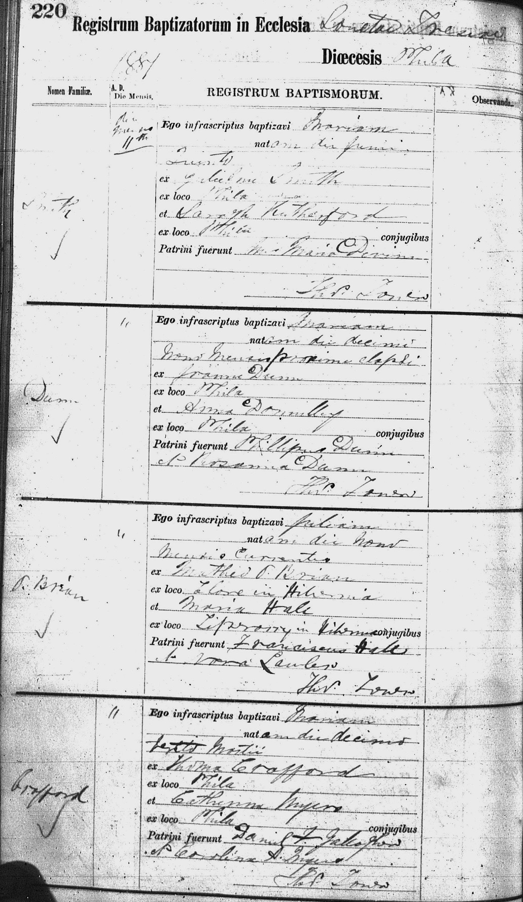 Julia O'Brien Baptized September 11, 1881 Philadelphia, PA
