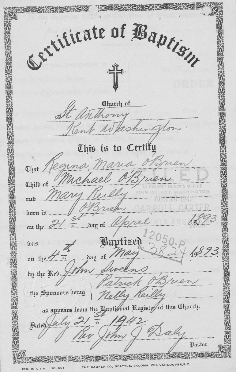 Larry's Michael Andrew and Mary Florence (nee Reilly) O'Brien Family Page