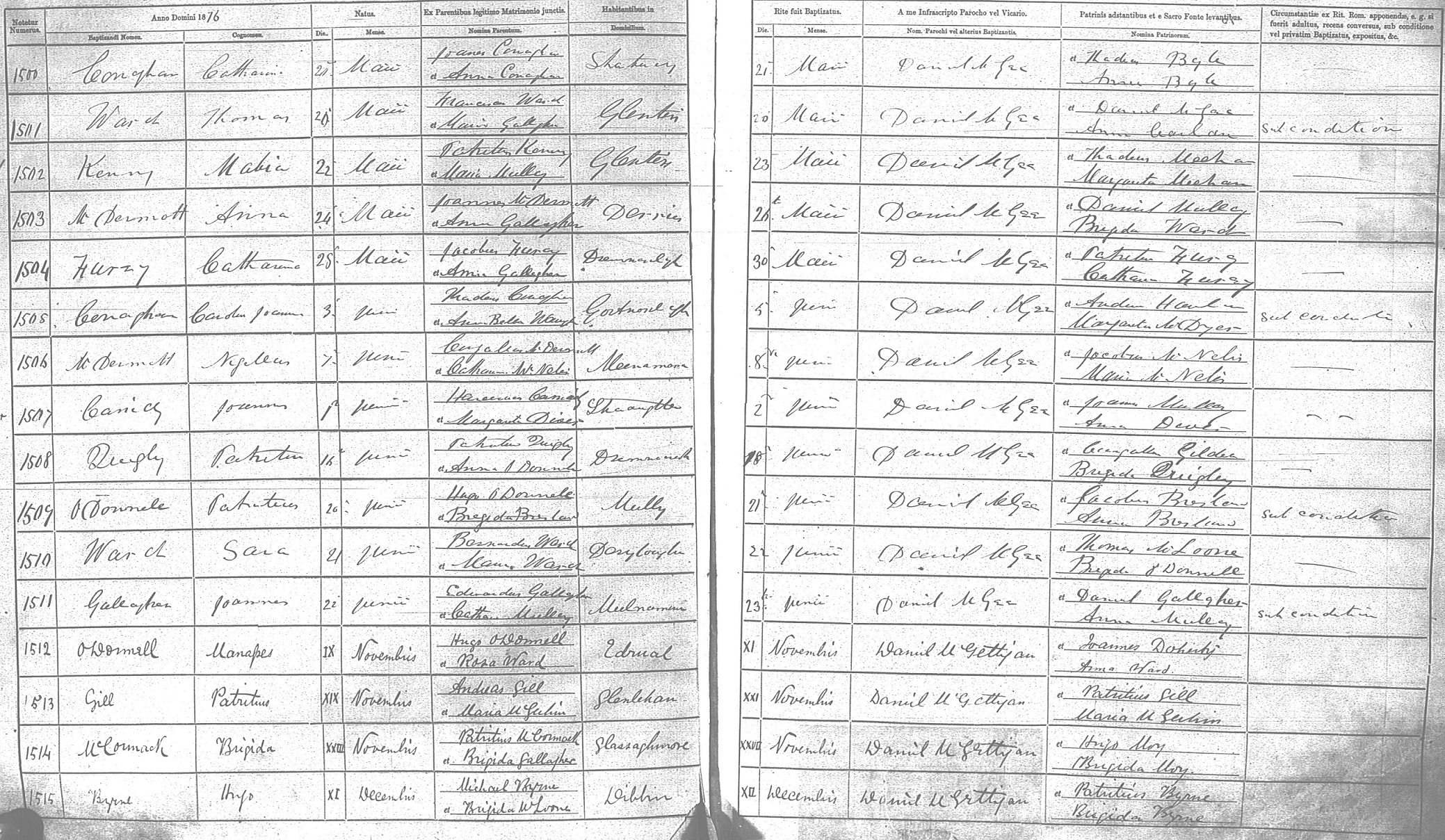 Note 2: The Manus O'Donnell entry is entry #1512, the 4th entry up from the bottom of the page.
