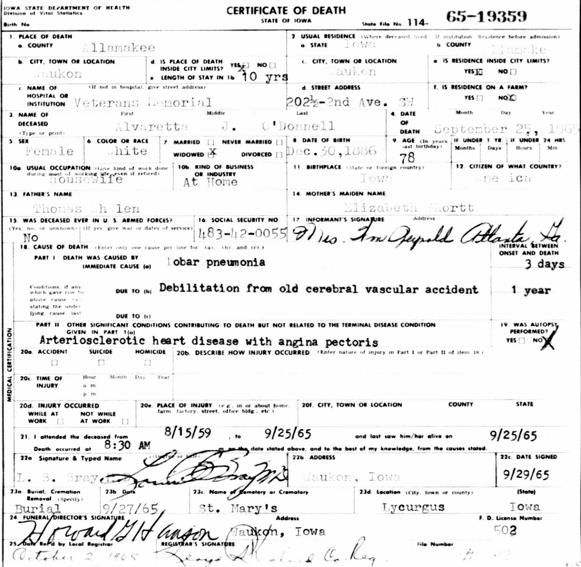 Larry's Anthony/Anton Joseph and Alvaretta J. (nee Whalen) O'Donnell Family Page